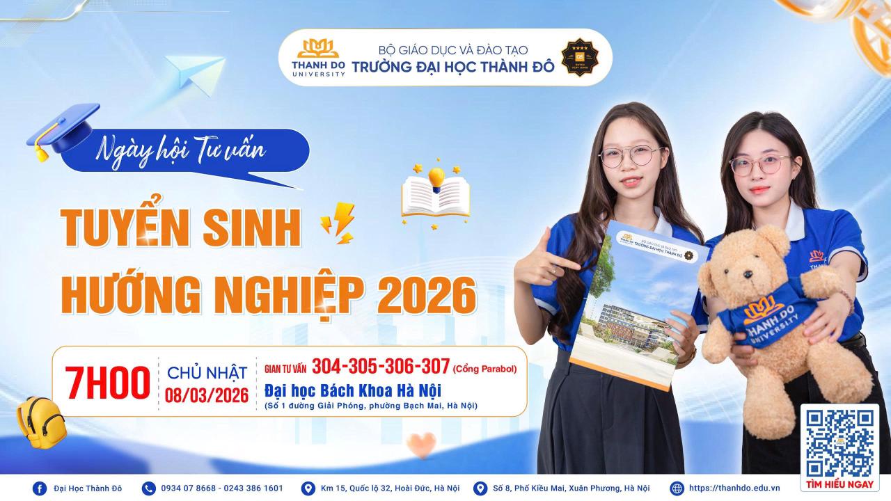 Năm 2026, Trường Đại học Thành Đô tuyển sinh đại học chính quy với 14 ngành đào tạo và 04 phương thức xét tuyểnlinh hoạt, tạo điều kiện để thí sinh chủ động lựa chọn phù hợp năng lực. Đặc biệt, triển khai chương trình đào tạo theo địa chỉ ngành Điều dưỡng, người học “nhúng” mình vào doanh nghiệp, học và làm từ thực tiễn nghề nghiệp. Đồng thời, 630 suất học bổng giá trị dành cho Tân sinh viên, mở cánh cửa đại học cho 2K8 tự tin chinh phục tương lai, sẵn sàng bước vào môi trường học tập thực tiễn, phát triển vững vàng năng lực, kỹ năng nghề nghiệp và tư duy ứng dụng. |