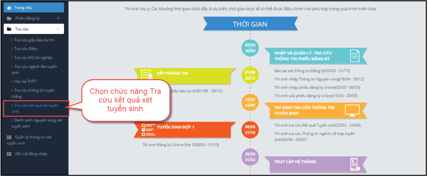 Bước 2: Vào menu Tra cứu kết quả xét tuyển sinh từ menu TRA CỨU