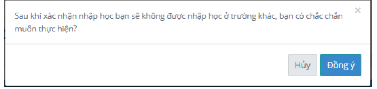 Bước 5: Nhấn Đồng ý để hoàn thành việc xác nhận nhập học