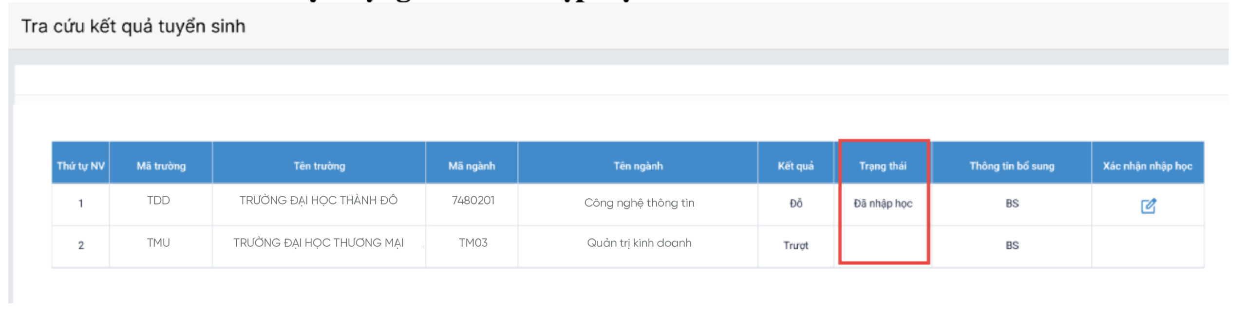 Bước 6: Kiểm tra lại trạng thái “Đã nhập học”