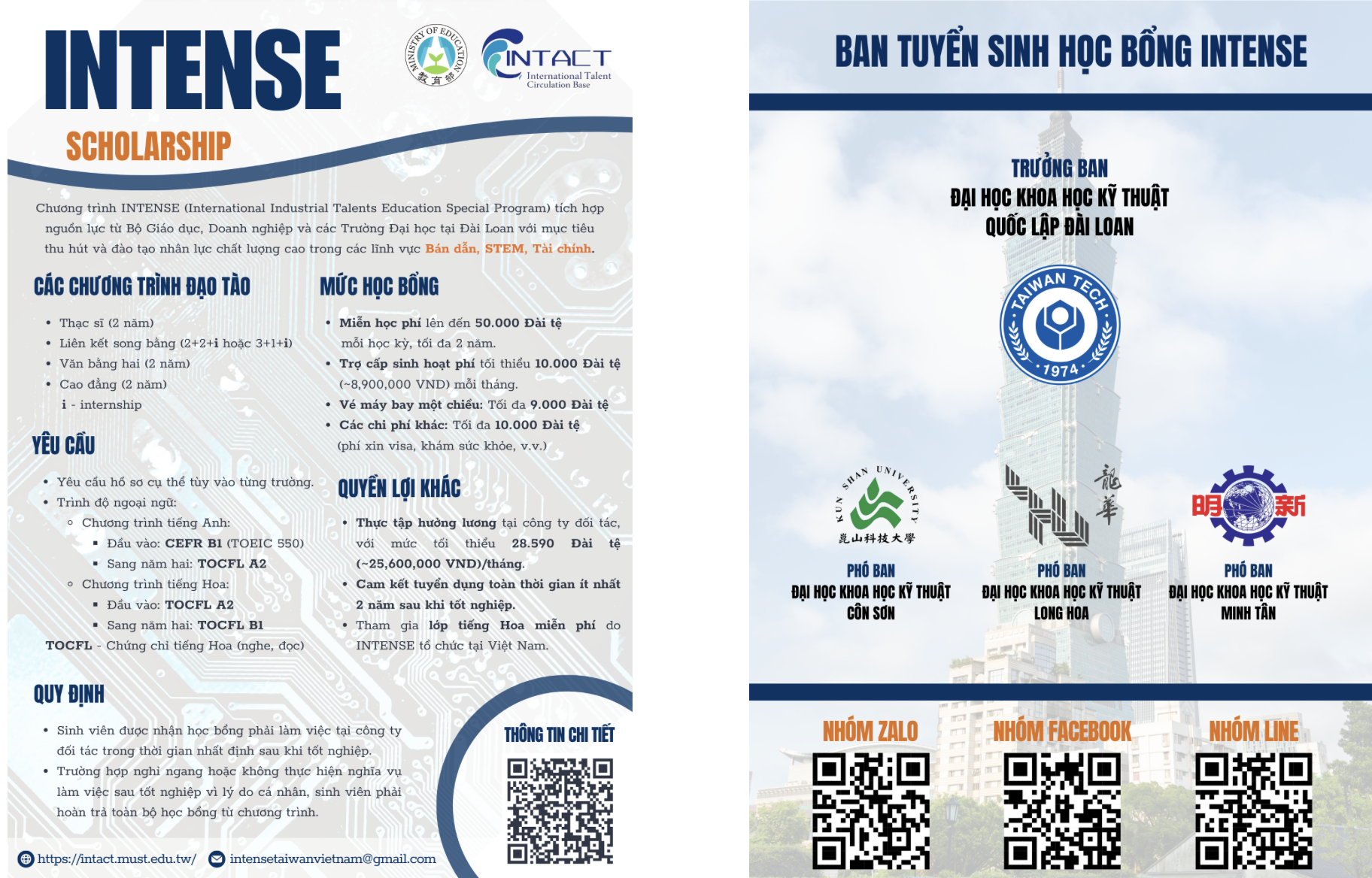 Học bổng INTENSE (Đài Loan) – dành tặng cho Thadoer, mở ra cơ hội học tập, thực tập, việc làm chất lượng tại Đài Loan, đặc biệt đối với sinh viên khối ngành công nghệ kỹ thuật.