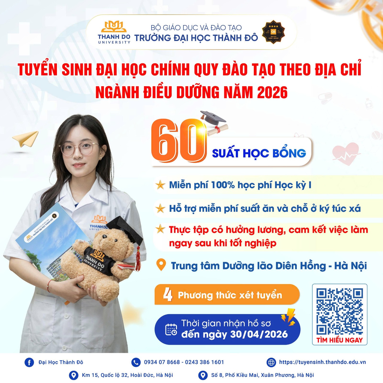 👉 Xem chi tiết thông báo tuyển sinh: Đào tạo theo địa chỉ ngành Điều dưỡng